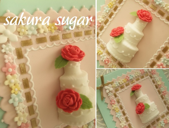![]() 『 ウェディングケーキの ミニウェルカムボード 』 手の平に乗るサイズのミニケーキを作ります。桜を作り、シュガーペーストとアイシングでデコレーションします。正面のイニシャルプレートは、こちらであらかじめご受講いただく方のイニシャルでご用意させていただきます。(中はダミーケーキを使用します。) ※ 今回は観賞用として作ります。食べることはできません。 |