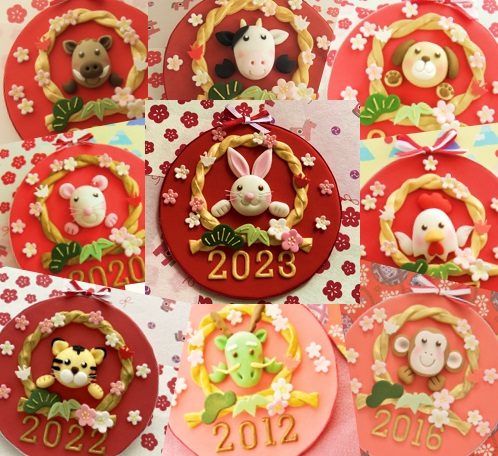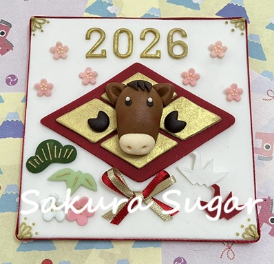 | 「干支のミニプラーク」(サイズ: 約10cm) 2026年の丑年 次回の干支 ![]() ![]() 上記の2種類(丸型か正方形)からご選択出来ます。 下記の画像は、以前のの課題作品です。 ![]() 【 レッスン内容 】 寅・しめ縄・松竹梅をシュガーペーストで作り、 カードの上に飾っていただきます。 (シュガーペーストとアイシングを使用します。) 翌年の干支のウシのプラークを作ります。 ※観賞用として作りますので食べることはできません。 色は、こちらであらかじめ染めてご用意しております。 入会金不要 ※初心者の方、対象です。 【 レッスン開講日時 】 こちらのレッスンはご都合の良い日時を ご相談下さいませ。 【 レッスン料 】1レッスン ※2023年よりレッスン料変更になっております。ご了承くださいませ。 4,200円(一般) / 3,780円(さくらしゅがー館会員様) (材料費・テキスト代込み 箱つき) (※どちらのデザインのプラークも同じレッスン料になります。) 【 定 員 】 各回 1名様〜3名様 手提げ袋、筆記用具とハンドタオル・エプロンをご持参下さいませ。 |