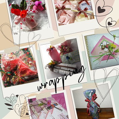 ![]() 斜め包み・キャラメル包みなどの基本的な包み方を取り入れ、 リボンの結び方や使い方、包装紙や不織布・OPPなどを使用し レッスンをご受講されます季節に合わせたラッピングをレッスン致します。 長くレッスンを楽しんでいただけます。 (例: お正月・バレンタイン・母の日・父の日・クリスマスなど) |